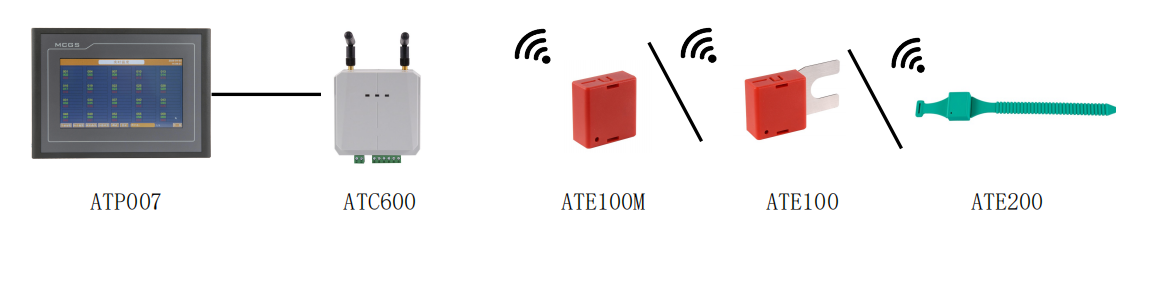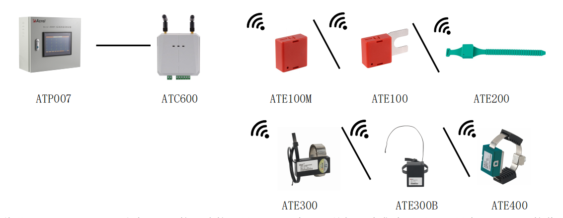 說明:ATC600 無線溫度收發(fā)器可連接 240 路無線溫度傳感器 ATE100/100M/200/300/300B/400,可接收多臺