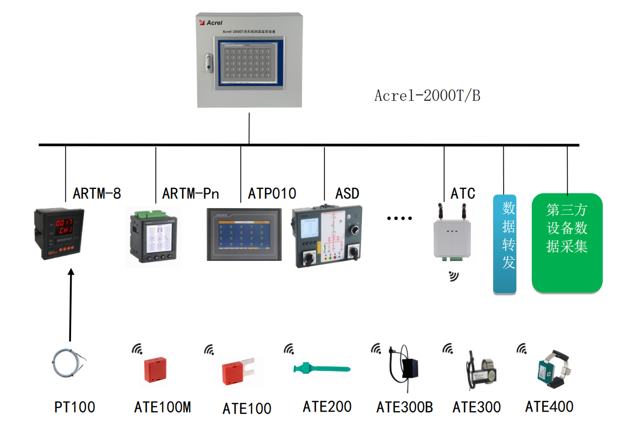 Acrel-2000/T無線測溫系統(tǒng)可以將用戶站內(nèi)設備層所有測溫裝置的溫度數(shù)據(jù)接入,利用先進的計算機