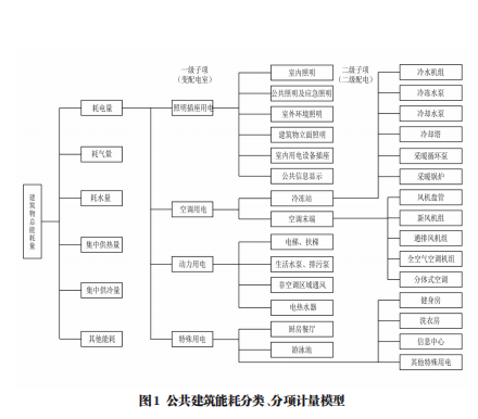分項(xiàng)能耗是對同類能耗按照不同用途進(jìn)行采集和統(tǒng)計(jì)的分析。依據(jù)相關(guān)技術(shù)規(guī)范規(guī)定,建筑能源中,電量的計(jì)量分為四個分項(xiàng)。