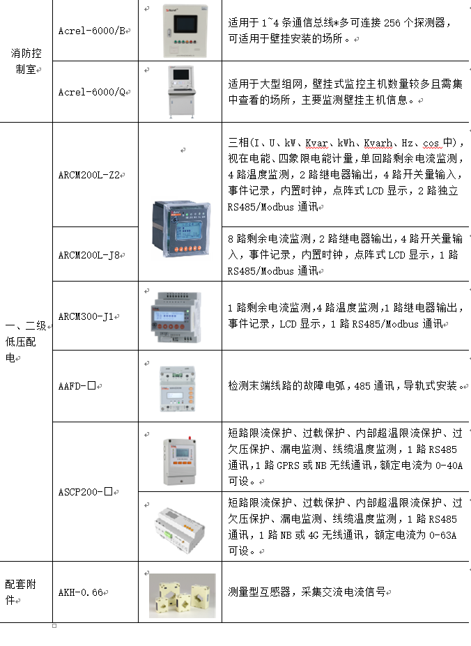 Acre1-6000電氣火災(zāi)監(jiān)控系統(tǒng),是根據(jù)國(guó)家現(xiàn)行規(guī)范標(biāo)準(zhǔn)由安科瑞電氣股份有限公司研發(fā)的全數(shù)字化獨(dú)立運(yùn)行的系統(tǒng),已通過(guò)國(guó)家消防電子產(chǎn)品質(zhì)量監(jiān)督檢驗(yàn)中心的消防電子產(chǎn)品試驗(yàn)認(rèn)證,并且均通過(guò)嚴(yán)格的EMC電磁兼容試驗(yàn),保證了該系列產(chǎn)品在低壓配電系統(tǒng)中的安全正常運(yùn)行,現(xiàn)均已批量生產(chǎn)并在全國(guó)得到廣泛地應(yīng)用。該系統(tǒng)通過(guò)對(duì)剩余電流、過(guò)電流、過(guò)電壓、溫度和故障電弧等信號(hào)的采集與監(jiān)視,實(shí)現(xiàn)對(duì)電氣火災(zāi)的早期預(yù)防和報(bào)警,當(dāng)必要時(shí)還能聯(lián)動(dòng)切除被檢測(cè)到剩余電流、溫度和故障電弧等超標(biāo)的配電回路;并根據(jù)用戶的需求,還可以滿足與AcreIEMS企業(yè)微電網(wǎng)管理云平臺(tái)或火災(zāi)自動(dòng)報(bào)警系統(tǒng)等進(jìn)行數(shù)據(jù)交換和共享。