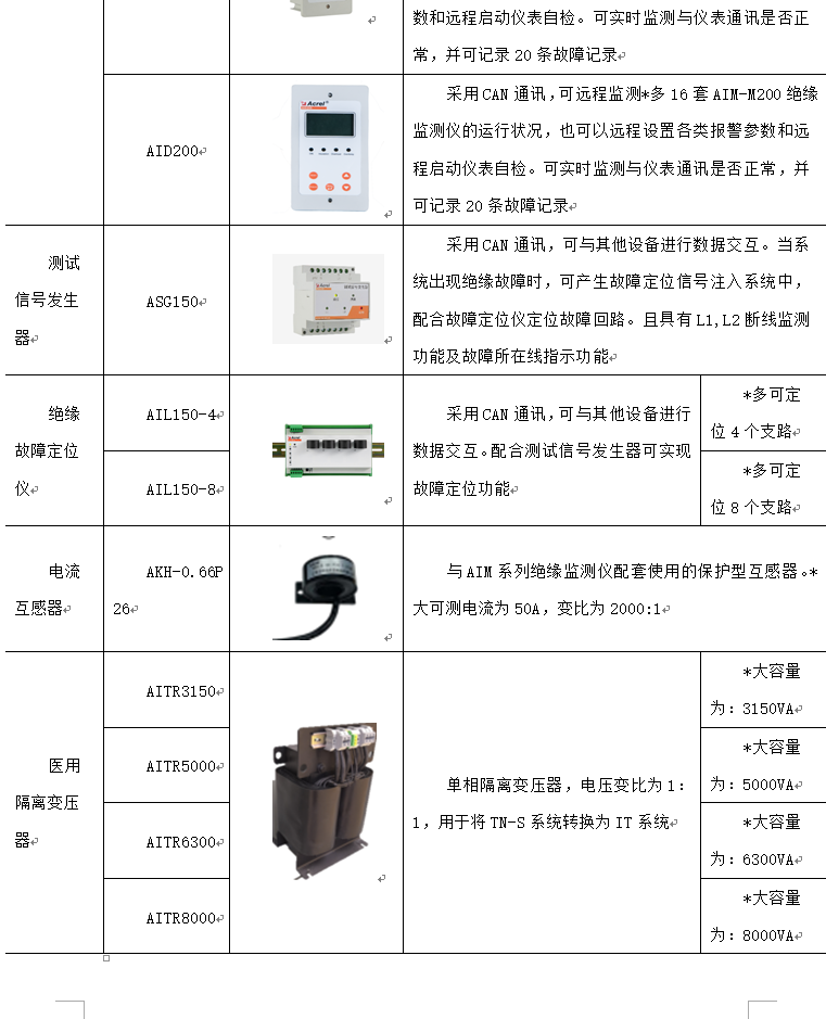4.5安科瑞產(chǎn)品功能和技術(shù)參數(shù)