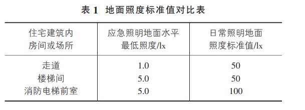 住宅項目中,無需設(shè)置應(yīng)急照明的場所,均不涉及消防應(yīng)急照明能否兼用于日常照明的問題。對于此問題,則可在住宅項目設(shè)置了應(yīng)急照明的場所中,展開分析:《技術(shù)標準》第3.1.6條要求,住宅建筑中,當(dāng)燈具采用自帶蓄電池供電方式時,消防應(yīng)急照明于日常照明兼用。同時《技術(shù)標準》第3.2.1條提到,未設(shè)置消防控制室的住宅建筑,疏散通道和樓梯間等場所可選擇自帶電源B型燈具。若是采用集中控制型系統(tǒng),若燈具均距地面8m及以下安裝,選用A型燈具。若消防照明兼用于日常照明,采用安全電壓(36V及以下)供電的消防應(yīng)急燈具,雖然能滿足應(yīng)急照明地面水平*低照度值的要求,但日常照明的照度標準值若要滿足規(guī)范要求則比較困難,見表1。