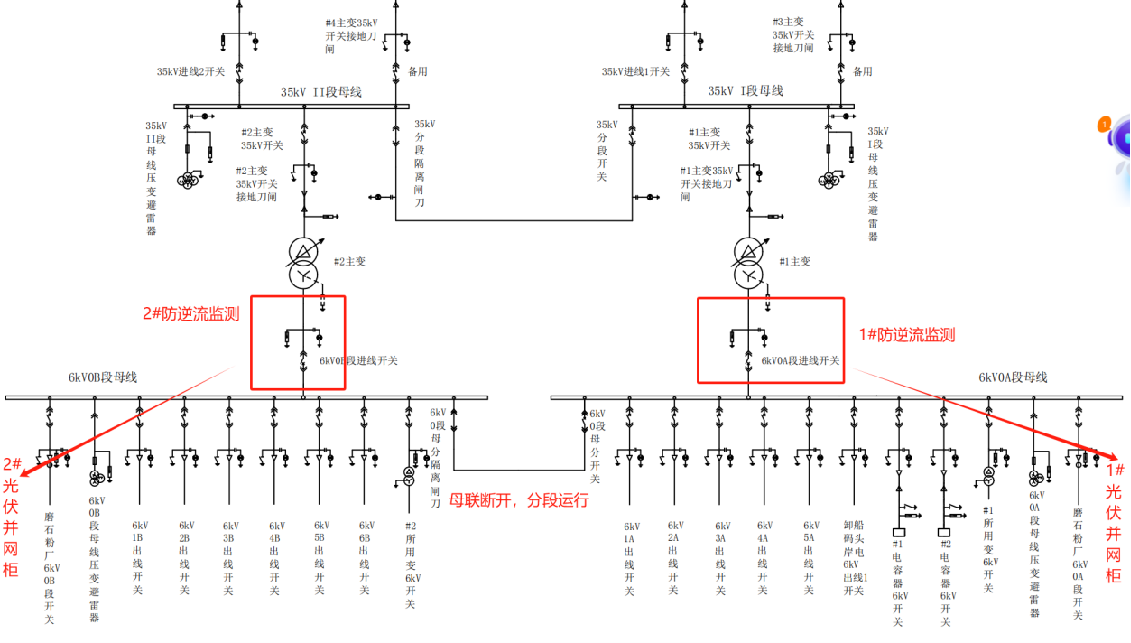 主機安裝在市電進線側,監(jiān)測市電側功率狀態(tài),監(jiān)測到異常通過光纖鏈路遠程輸出到光伏并網點從機,進而做出相應的保護動作。