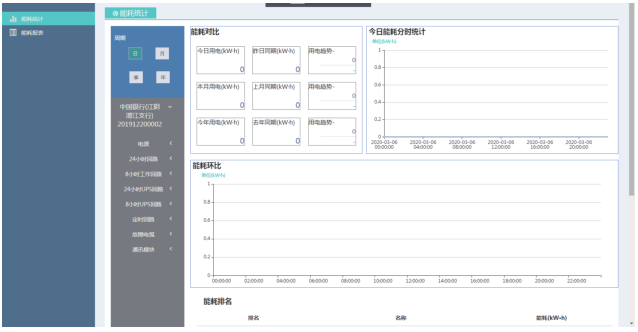 能耗統(tǒng)計(jì)界面 ,針對(duì)各個(gè)網(wǎng)點(diǎn)或者場(chǎng)所,平臺(tái)能夠針對(duì)整個(gè)網(wǎng)點(diǎn)或者單個(gè)回路,按照年、季度、月、日或者小時(shí),對(duì)能耗進(jìn)行查詢(xún)并統(tǒng)計(jì),并對(duì)每個(gè)回路進(jìn)行能耗的排名。
